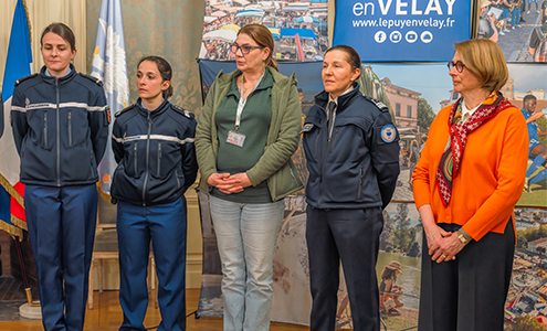 L’Adjudante Marie B. et la Maréchale des logis cheffe Clémentine H. ont représenté la Maison de Protection des Familles de la Gendarmerie Nationale de Haute-Loire. Le Commandant divisionnaire fonctionnel Elisabeth Romang-Barge (Directrice départementale adjointe de la police Nationale de Haute-Loire), et la Brigadière-cheffe Anne Q. étaient quant à elles présentes pour porter les couleurs de la Police Nationale.