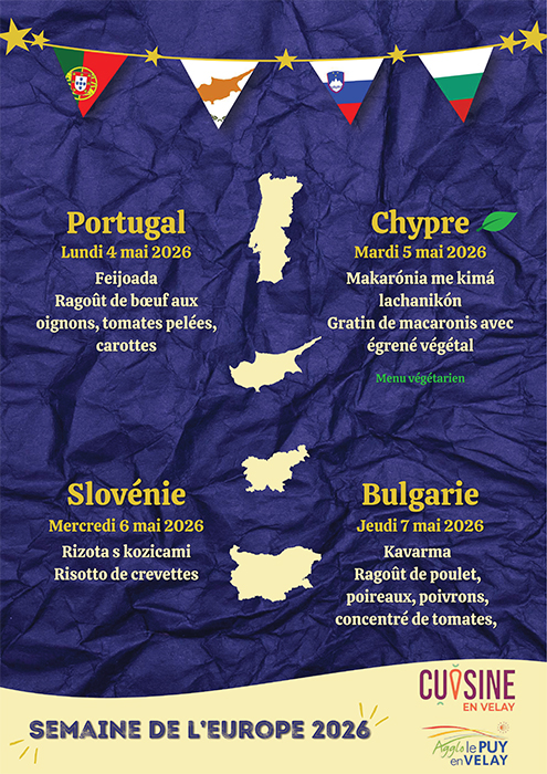Les repas, préparés à la Cuisine Centrale, à Bains, sont livrés en barquettes jetables. Les barquettes peuvent êtres remises en température au four à 120° et sont micro-ondables.