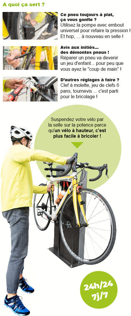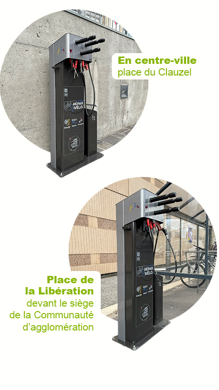 Vous les avez peut-être déjà remarquées : deux stations de réparation et de gonflage vélo ont fait leur apparition en centre-ville. Accessibles en libre service et totalement gratuites, elles permettent aux cyclistes de faire de menues réparations et autres réglages sur leurs 2 roues.