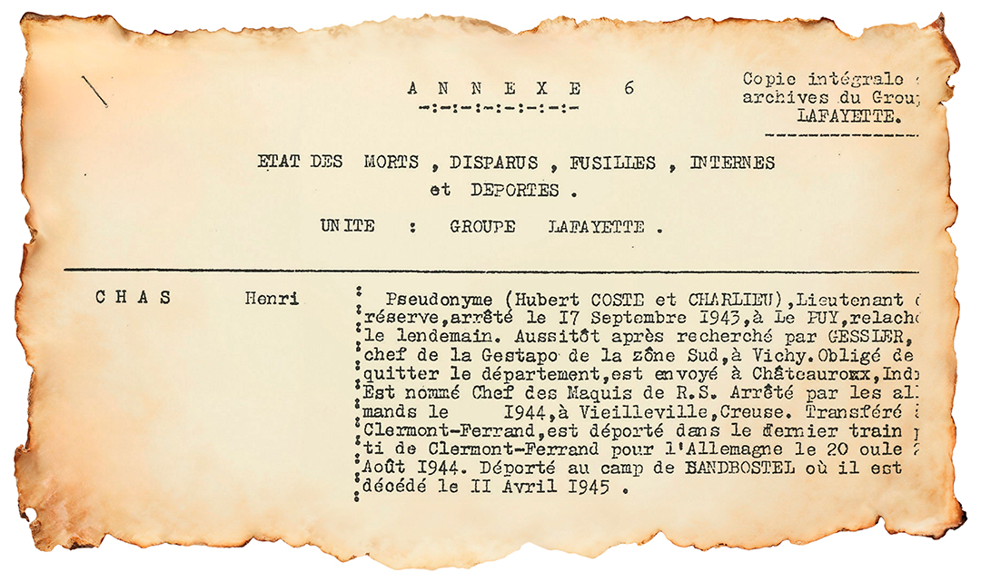 Né le 30 décembre 1900 à Armentières, Henri Chas s’engage très jeune dans l’armée. Vétéran de la Grande Guerre, il devient plus tard une figure centrale des réseaux clandestins de la Résistance en Haute-Loire et dans le Limousin. Il paiera de sa vie son engagement pour la liberté, mais son nom figure aujourd’hui parmi les Compagnons de la Libération, une distinction instituée par le général de Gaulle pour honorer ceux qui, par des actes d’exception, ont contribué à rendre son indépendance à la France.